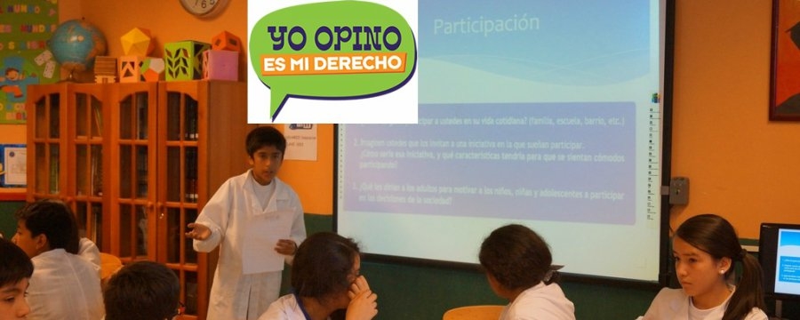 El día viernes 27 de marzo nuestro colegio inició su participación en el Encuentro Nacional, Yo opino es mi derecho, organizado por el Consejo Nacional de la Infancia; en conjunto con el Ministerio de Educación, la Junta Nacional de Jardines Infantiles (JUNJI), Fundación Integra; de PNUD, Unicef y OEI. Dicho encuentro, tiene como objetivo conocer las opiniones de niños, niñas y adolescentes de todo Chile, que serán consideradas en la construcción de la nueva política de niñez y adolescencia.
