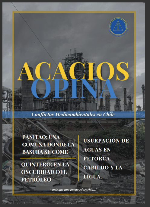 En el contexto de un plan pedagógico para el desarrollo de habilidades críticas, como departamento materializamos una revista de artículos de opinión sobre los conflictos socioambientales que aquejan a diferentes comunidades de nuestro país en el marco de los OA trabajados en clases. Por lo tanto, esta hermosa revista ha sido resultado del trabajo conjunto del equipo docente de Historia, UTP y por sobre todo, la investigación, preocupación y opinión de estudiantes de 4to Medio que dedicaron enormes esfuerzos a completar con éxito este fragmento de realidad. Editada por el profesor Ernesto Avila Rojas-Murphy, esta obra se enmarca en el proyecto de nuestra comunidad por fomentar la opinión de nuestras y nuestros estudiantes frente al mundo que los rodea, encontrándose en formato físico para compartir con la comunidad escolar y de forma digital para acceso a todo público.